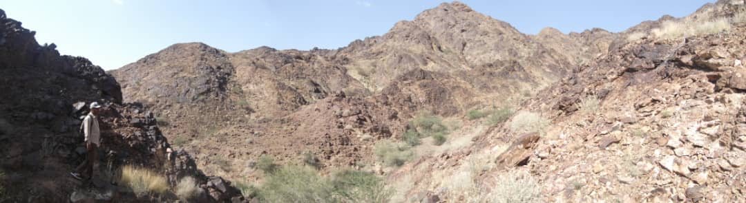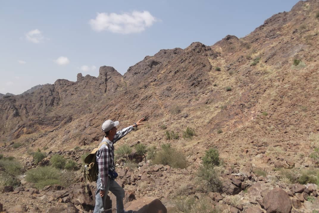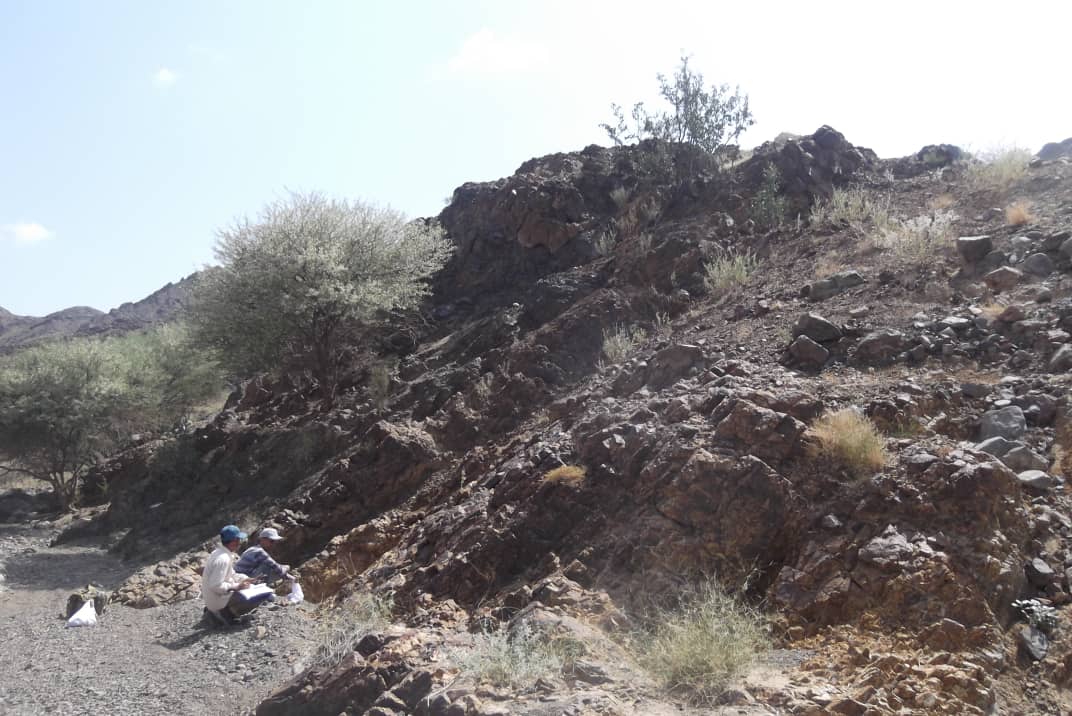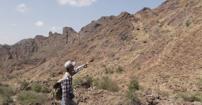 نزول الفريق الجيولوجي بإدارة المعادن الفلزية إلى منطقة جبل منيف مديرية تبن محافظة لحج لعرض إجراء التحريات المعدنية للمعادن الفلزيه.