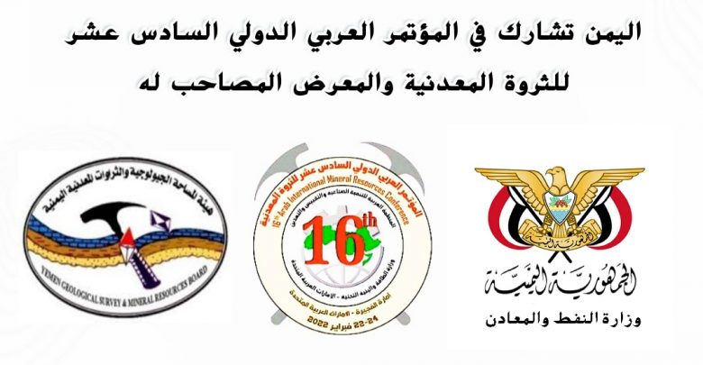 ستشارك وزارة النفط والمعادن، ممثلة بهيئة المساحة الجيولوجية والثروات المعدنية اليمنية في المؤتمر العربي الدولي السادس عشر للثروة المعدنية والمعرض المصاحب له، والذي سينعقد بإمارة الفجيرة