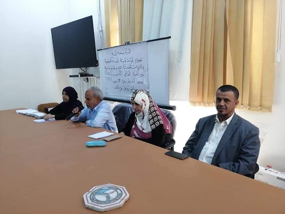 تم صباح اليوم الأحد ١٣مارس ٢٠٢٢م برعاية كريمة من القيادة في هيئة المساحة الجيولوجية والثروات المعدنية تكريم كل موظفات هيئة المساحة الجيولوجية والثروات المعدنية ، وذلك بمناسبة اليوم العالمي للمرأة العاملة، حيث قام المهندس أحمد يماني التميمي القائم بأعمال رئيس هيئة المساحة الجيولوجية والثروات المعدنية اليمنية بتكريم كل الموظفات العاملات في الهيئة ، وذلك تقديراً لجهودهم المثمرة في إنجاح عمل الهيئة .