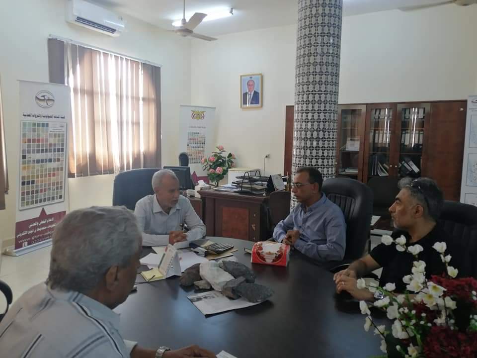 ناقش صباح اليوم الثلاثاء بعدن القائم بأعمال رئيس هيئة المساحة الجيولوجية والثروات المعدنية المهندس أحمد يماني التميمي مع المهندس فيصل الثعلبي رئيس الهيئة العامة لحماية البيئه أفاق العمل المشترك بين الهيئتين.