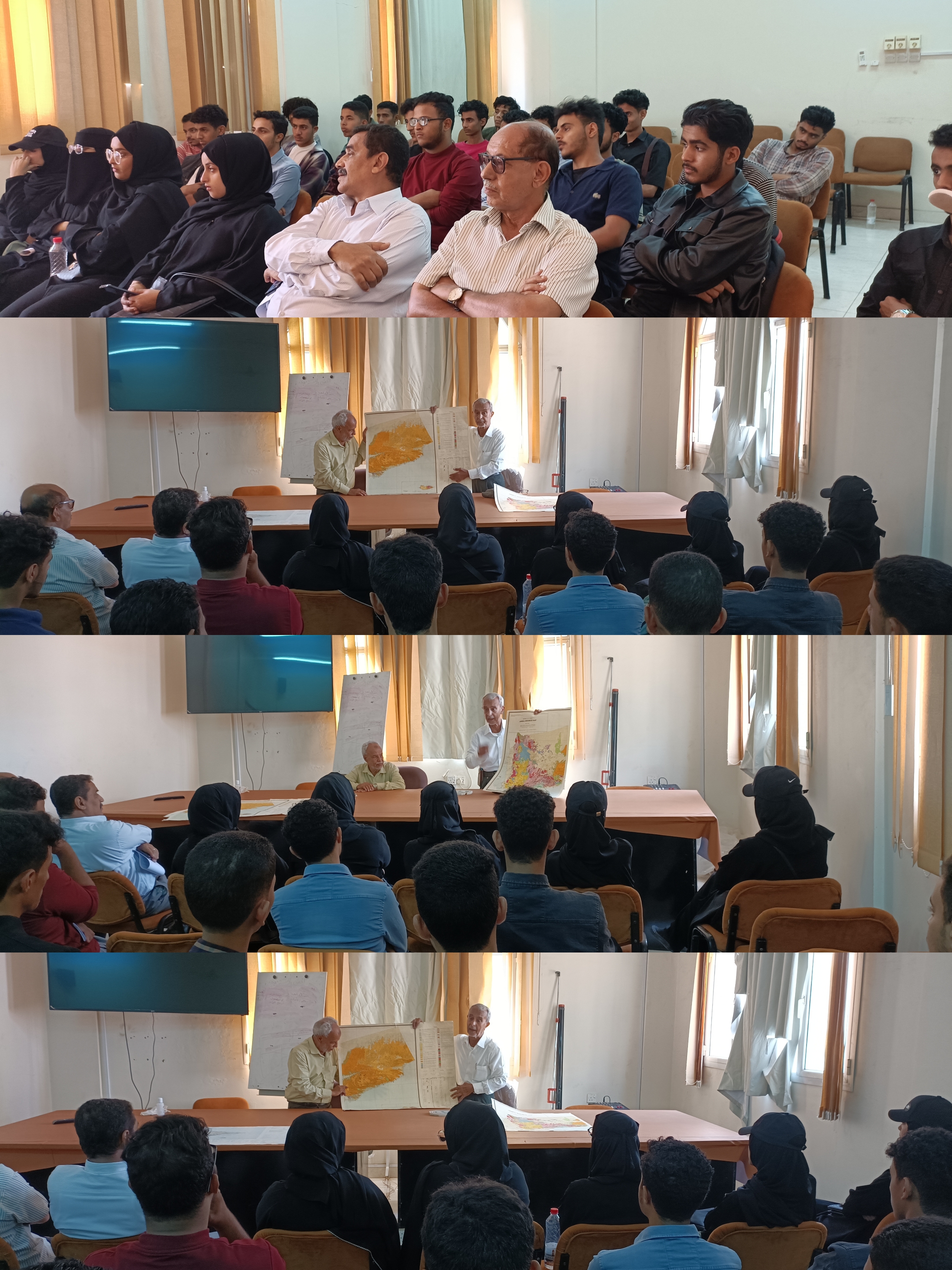 حيث أستمع الطلاب الى شرح تفصيلي من المهندس معروف عقبه مستشار وزير النفط والمعادن حول طبيعة العمل الجيولوجي والخرائط الجيولوجية والوضع الجيولوجي للصخور والتراكيب الجيولوجية لجميع المناطق في اليمن، بعد ما تم زيارة المتحف الجيولوجي لصخور والاطلاع على أنواع الصخور والمعادن فيه حيث كان في إستقابلهم المهندس جلال الميسري وقدم لطلاب  شرحاً عن جميع أنواع الصخور في المحتف.