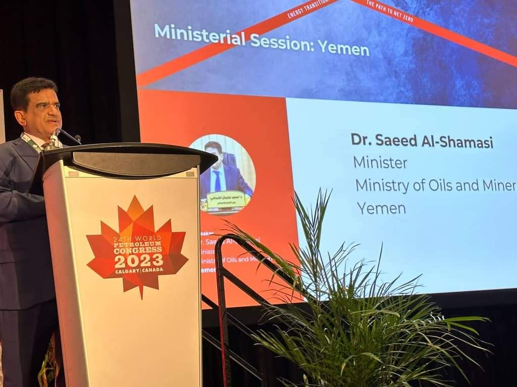 استعرض معالي وزير النفط والمعادن الدكتور سعيد سليمان الشماسي اليوم الخميس بمدنية كالجاري الكندية بالمؤتمر العالمي للبترول الفرص الاستثمارية في قطاع البترول والثروات المعدنية في بلادنا.