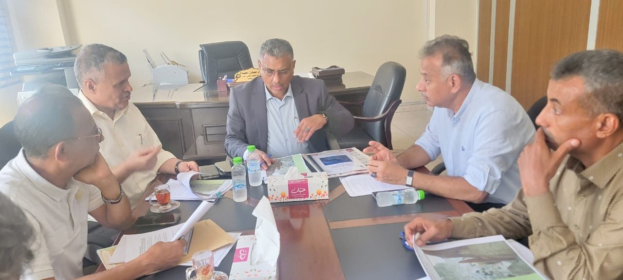 استمع نائب المحافظ خلال الاجتماع إلى شرح من مدير مكتب الأشغال العامة وفريق هيئة المساحة الجيولوجية عن المواقع المحددة لإزالة الصخور الآيلة للسقوط في مديرية المعلا ومديرية صيره.