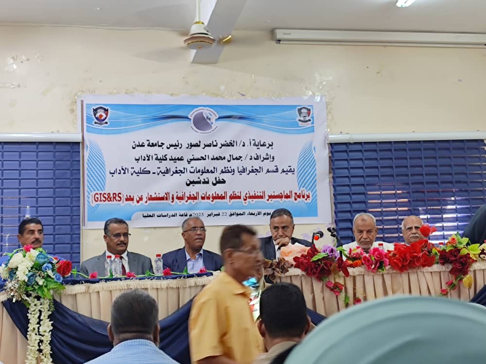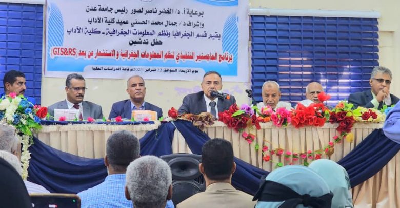 أقامت جامعة عدن صباح اليوم حفل تدشين برنامج الماجستير التنفيذي لنظم المعلومات الجغرافية والاستشعار عن بعد، وذلك برعاية الدكتور الخضر ناصر لصور رئيس الجامعة، واشراف مباشر من الدكتور جمال محمد الحسني عميد كلية الآداب.