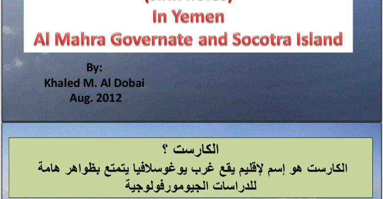 دراسة بحثية للباحث المهندس خالد الدبعي عن الظواهر الطبيعية_ظاهرة تراكيب الكارست(بالوعات الإذابه)في اليمن بمحافظة المهرة وكذلك محافظة سقطرى