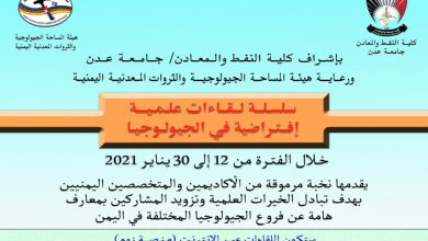 تنظم كلية النفط والمعادن/جامعة عدن بالتعاون مع هيئة المساحة الجيولوجية والثروات المعدنية اليمنية سلسلة لقاءات علمية افتراضية في الجيولوجيا يقدمها…
